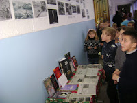 Бібліотекар дитячої бібліотеки Панасенко Валентина Олександрівна розповіла учням про концтабори Освенціма. Найбільший гітлеровський концтабір на окупованій території Європи, в якому здійснювалися плани знищення інших націй, головним чином євреїв, яких звозили сюди з різних країн, і поляків. Саме тут, у Освенцімі, проводилися найстрашніші експерименти над людьми. Число жертв складно визначити - мова йде про понад півтори мільйони жерьв 28 національностей. Ім’я вченого – хіміка Фріца Габера, керівника розробки засобу проти паразитів «Циклон Б», за допомогою якого, як стверджують історики Холокосту, в Німеччині було умертвлено 6 млн. євреїв. Помер він у 1934 році, а в 1942 році здійснювали випробування препарату. Засипали порошок у розпилювачі води в душових концентраційних таборів.