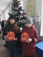 Привітання учнів пільгових категорій 1-11 класів солодкими подарунками.
